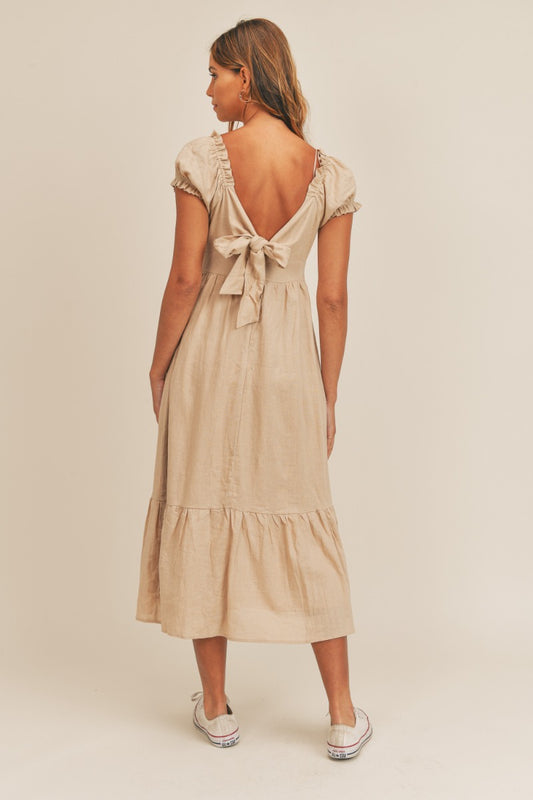 Mocha Linen V-Neck | Midi Dress