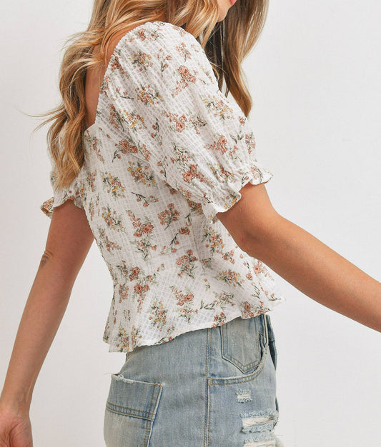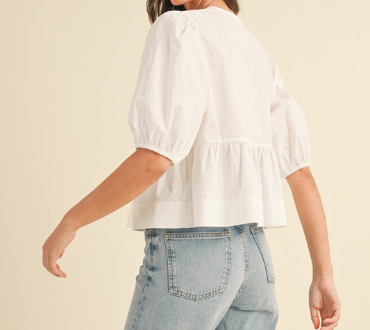 Balloon Sleeve Poplin Peplum Front Tie | Top